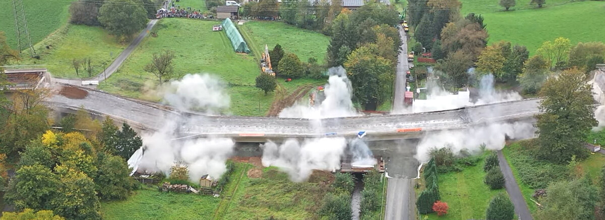 Sprengung der Kerkerbachtalbrücke im Oktober 2023